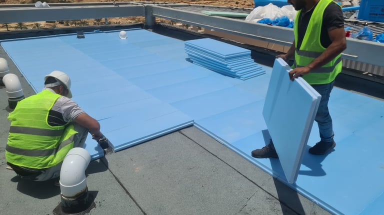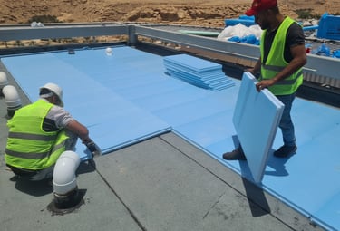 عزل حراري ومائي للأسطح يحافظ على برودة المنزل ويمنع تسرب المياه.